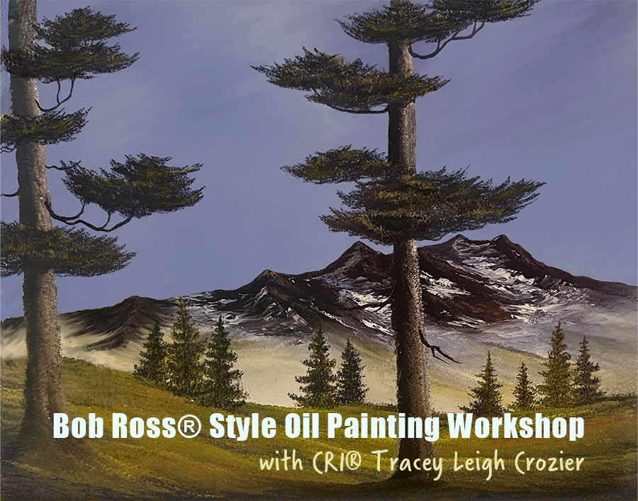 Join Bob Ross Certified Instructor® Tracey Leigh Crozier in this fun afternoon workshop! All supplies are included in this wet-on-wet class where you will be led from the beginning stages to a complete oil painting of a spring mountain scene in just a few hours.