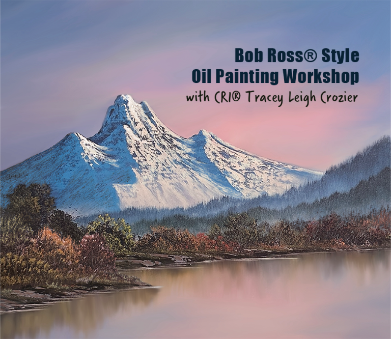 Join Bob Ross Certified Instructor® Tracey Leigh Crozier in this fun afternoon workshop! All supplies are included in this wet-on-wet class where you will be led from the beginning stages to a complete oil painting of a colourful mountain scene in just a few hours.