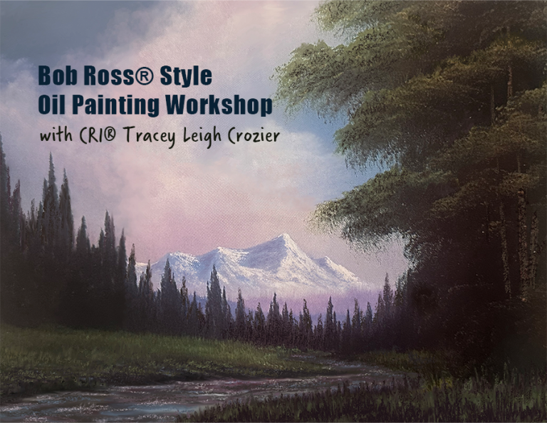 Join Bob Ross Certified Instructor® Tracey Leigh Crozier in this fun afternoon workshop! All supplies are included in this wet-on-wet class where you will be led from the beginning stages to a complete oil painting of a pretty mountain scene in just a few hours.